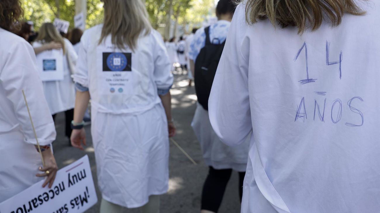 Algunos de los manifestantes del primer día de huelga de médicos especialistas en Madrid |EFE