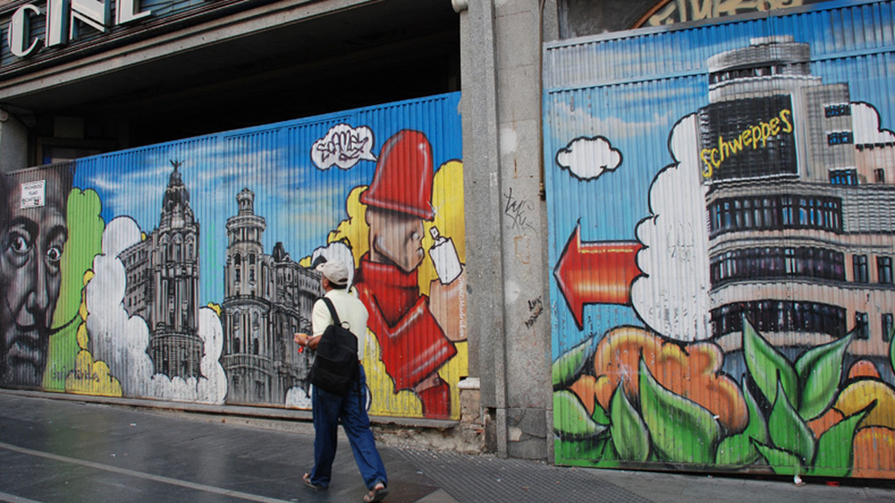 Arte urbano en plena Gran Vía: Un gran mural con azulejos adorna el Palacio de la Música