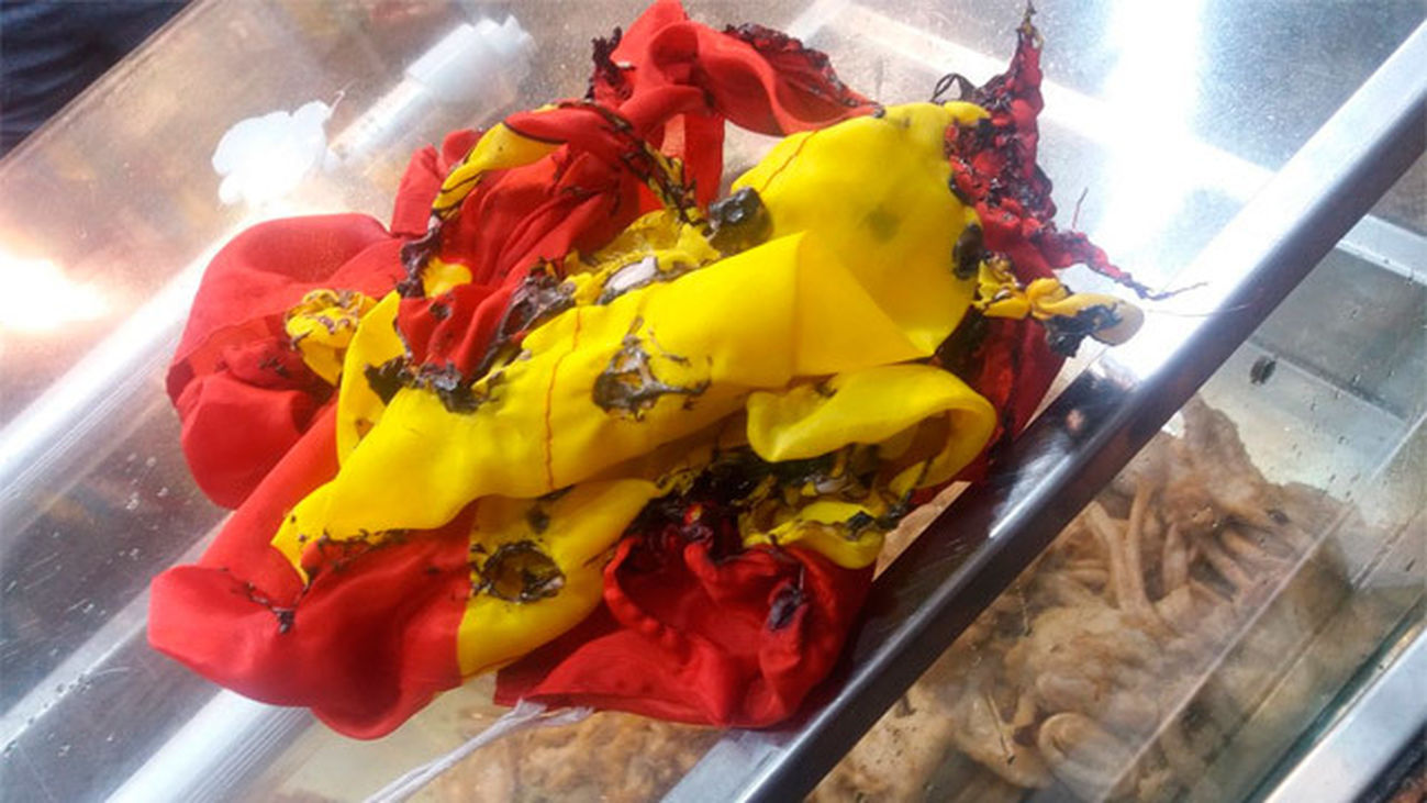 Según ha explicado en declaraciones a Europa Press Pedro, el vocal vecino de Cs en Vallecas, un joven "con un pañuelo en la cara" se acercó, la cortó del mastil donde estaba prendida y "la tiró a la sartén de las gallinejas, donde se quemó y casi provoca que el cocinero sufra también quemaduras".
