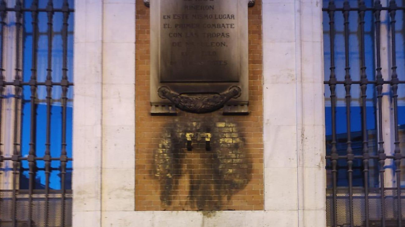 Queman la corona y la placa a los Héroes del 2 de Mayo en Sol |@IdiazAyuso