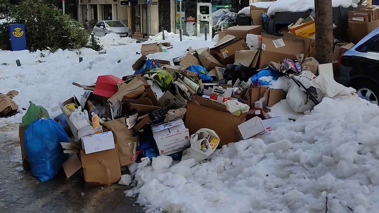 Acumulación de nieve y basura en la calle Alonso Heredia |FRAVM