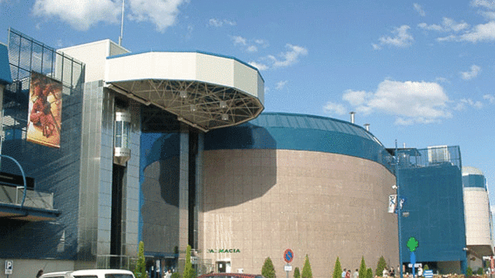Edificio vanguardista con pabellón acristalado con supermercado, moda, electrónica, servicios y restauración.