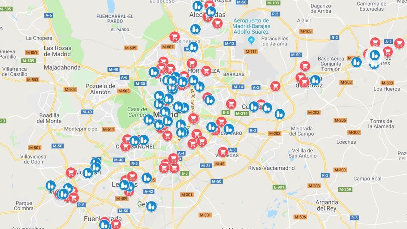 En Madrid, puedes encontrarlos en este mapa. En rojo están marcados los establecimientos más asequibles y en azul los menos económicos.