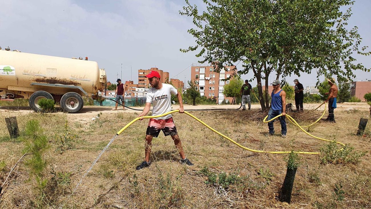 Vecinos de Campamento desafían la ola de calor para regar cientos de árboles jóvenes