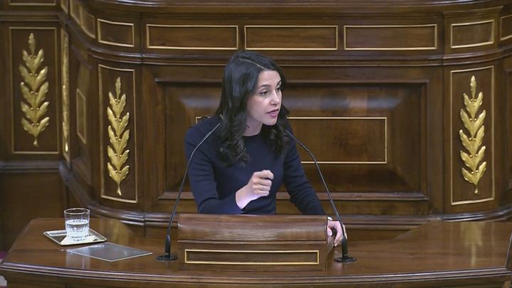 En su turno de réplica, la presidenta de Ciudadanos, Inés Arrimadas ha asegurado tras escuchar al presidente del Gobierno que "la falta de escrúpulos de Sánchez es impermeable a los discurso de la oposición".