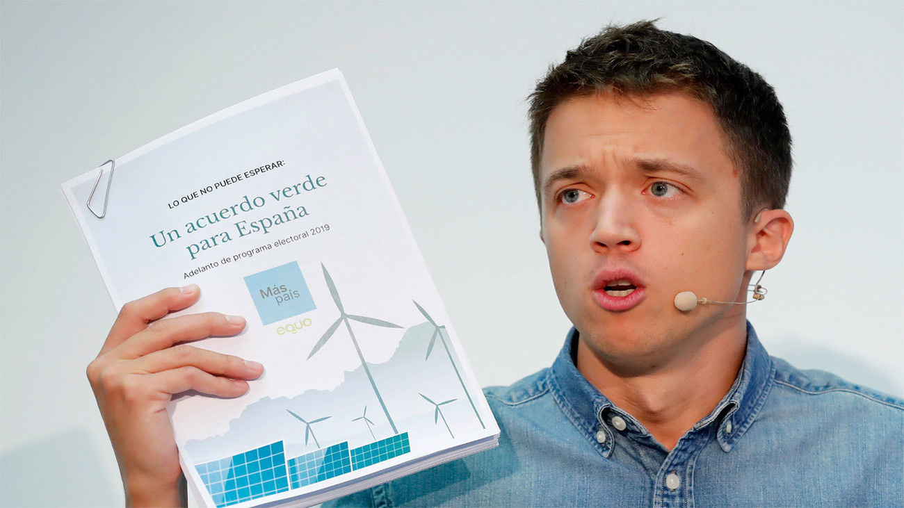 El líder de Más País, Iñigo Errejón, ha presentado este viernes su 'Acuerdo Verde para España' que contiene el núcleo de las políticas de transición ecológica de su programa electoral y que apuesta por la reducción de la semana laboral a cuatro días (32 horas) y el voto a partir de los 16 años.