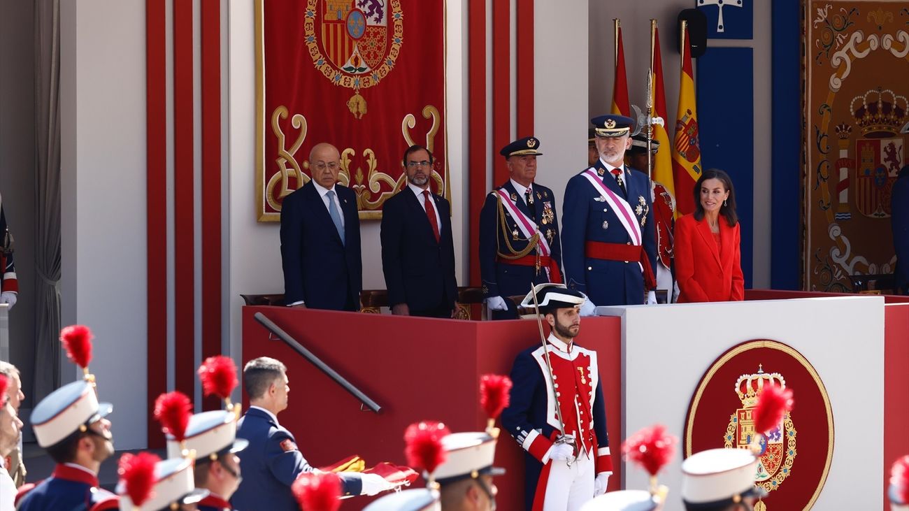 Los Reyes Don Felipe y Doña Letizia durante el desfile militar con motivo del día de las fuerzas armadas |TELEMADRID