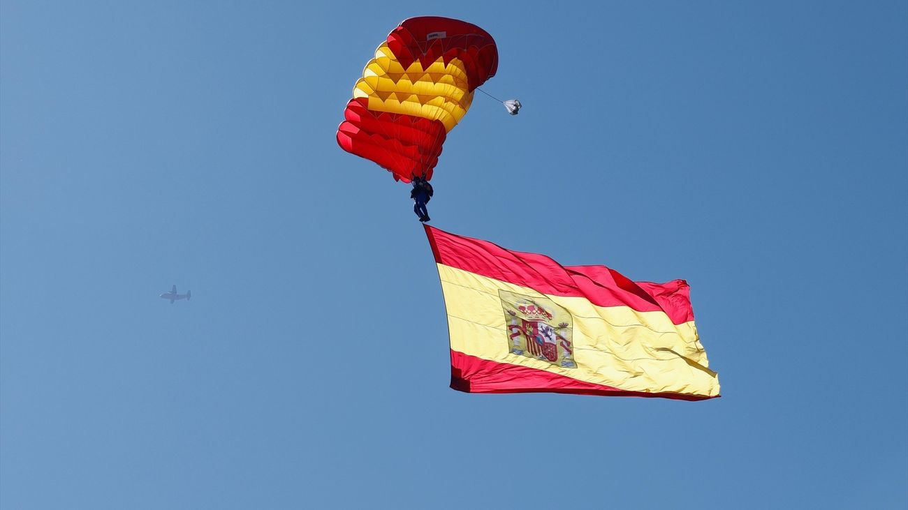 Salto en paracaídas con la bandera de España |EUROPA PRESS