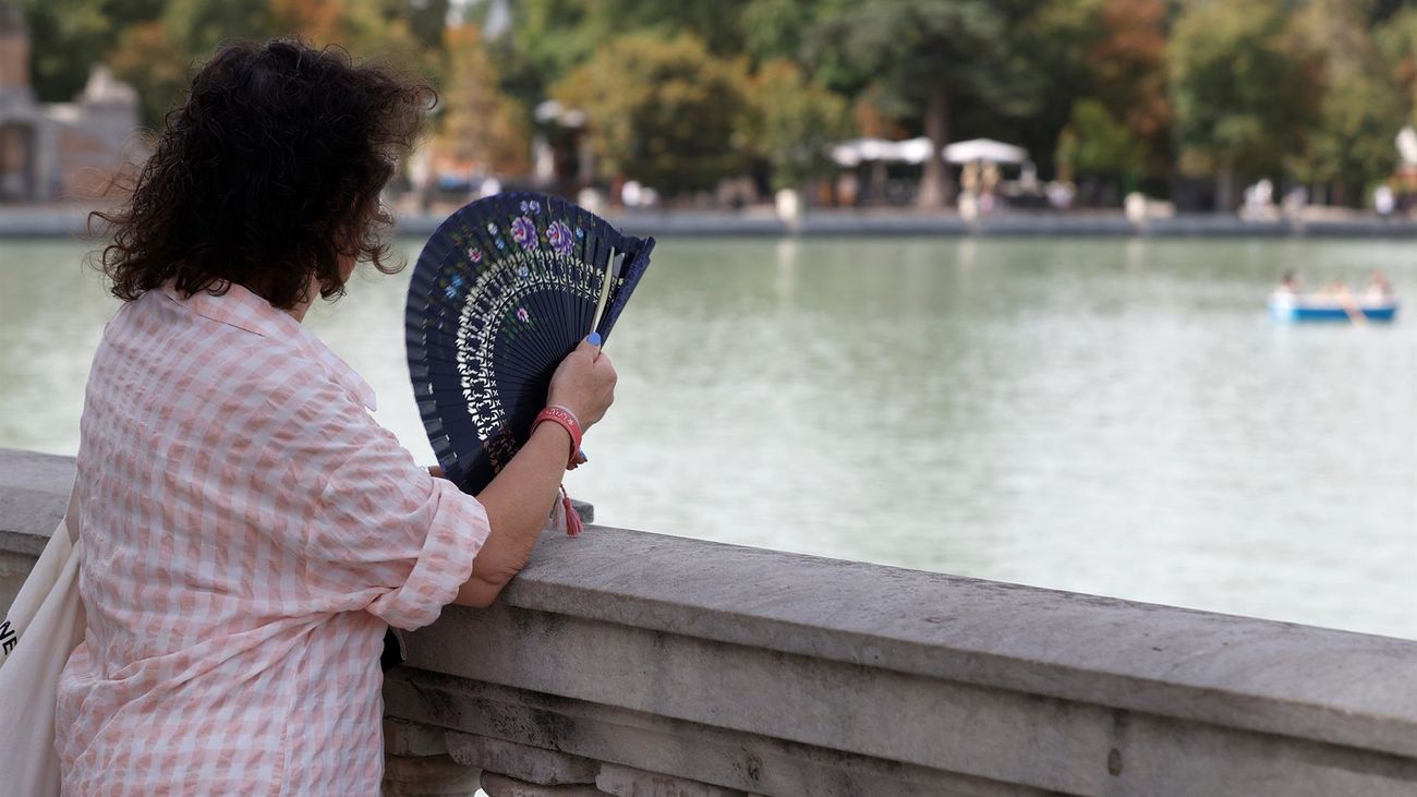 Quien tiene un abanico, tiene un tesoro. Imprescindible en estos días de ola de calor. Esta mujer aprovecha y usa el suyo en Madrid, mientras contempla a los valientes que reman bajo el ardiente sol en el lago del Retiro. |EFE