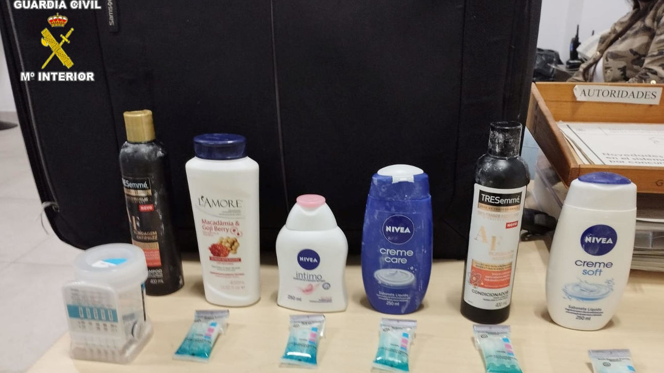 Al realizar una inspección más en profundidad del citado equipaje, localizaron en el interior de once botes de cosmética casi cuatro kilos y medio de cocaína diluida. La Guardia Civil detuvo a estas dos personas por un presunto delito contra la salud pública por tráfico de droga y se incautó de la cocaína que portaban.