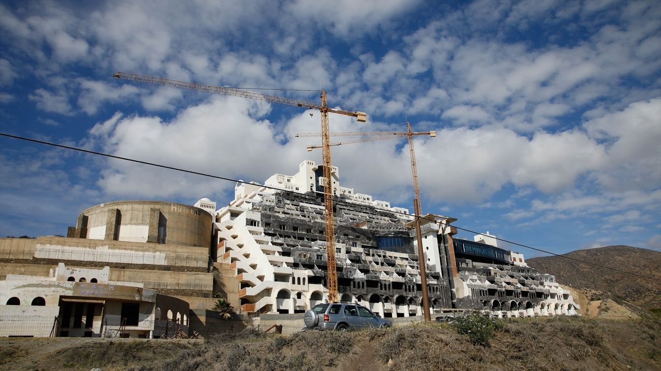 El hotel inacabado en la playa de El Algarrobico (Carboneras, Almería) lleva en el corredor de la muerte urbanístico desde hace dos décadas.