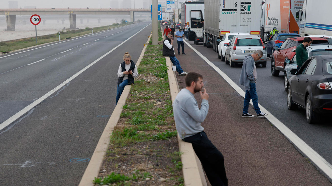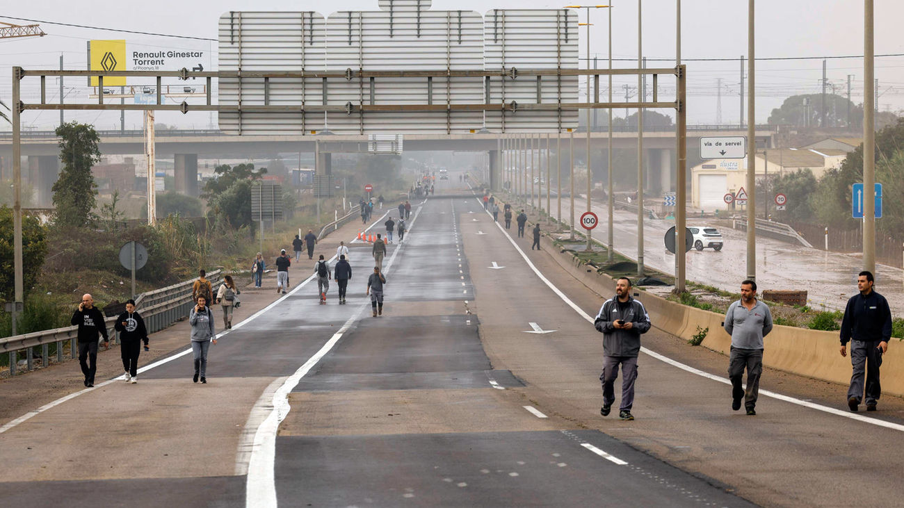 Multiples personas transitan por la CV-36 entre Valencia y Paiporta cuando el tráfico se encuentra cortado en gran parte de las carreteras de la provincia. |REDACCIÓN
