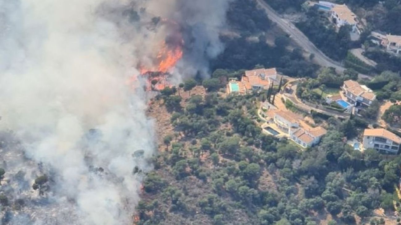 El fuego ha obligado a evacuar urbanizaciones, masías y un campo de golf, que han priorizado el flanco izquierdo por ser el más activo y que, en ese punto, la situación es "mejor que hace horas".