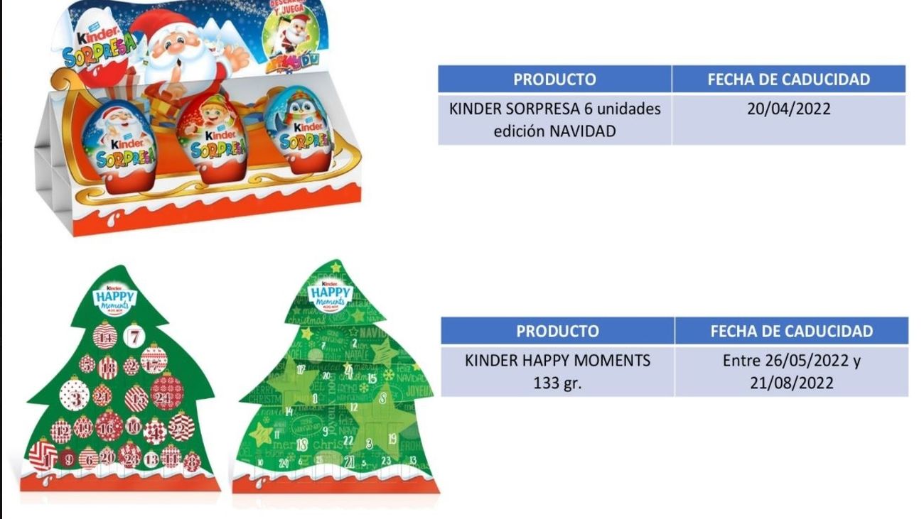 - KINDER HAPPY MOMENTS, peso 133g y 191gFechas de consumo preferente comprendidas entre el 26/05/2022 y el 21/08/2022