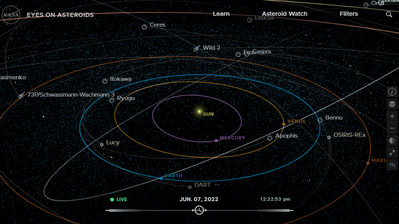 El simulador interactivo permite viajar en el tiempo y establecer los momentos del 'conflicto' entre la órbita terrestre y un cuerpo potencialmente peligroso. consistió en elegir un asteroide grande, conocido y potencialmente peligroso y se eliminó esencialmente de la base de datos de monitoreo de defensa planetaria para ver si podía detectarse correctamente de nuevo.