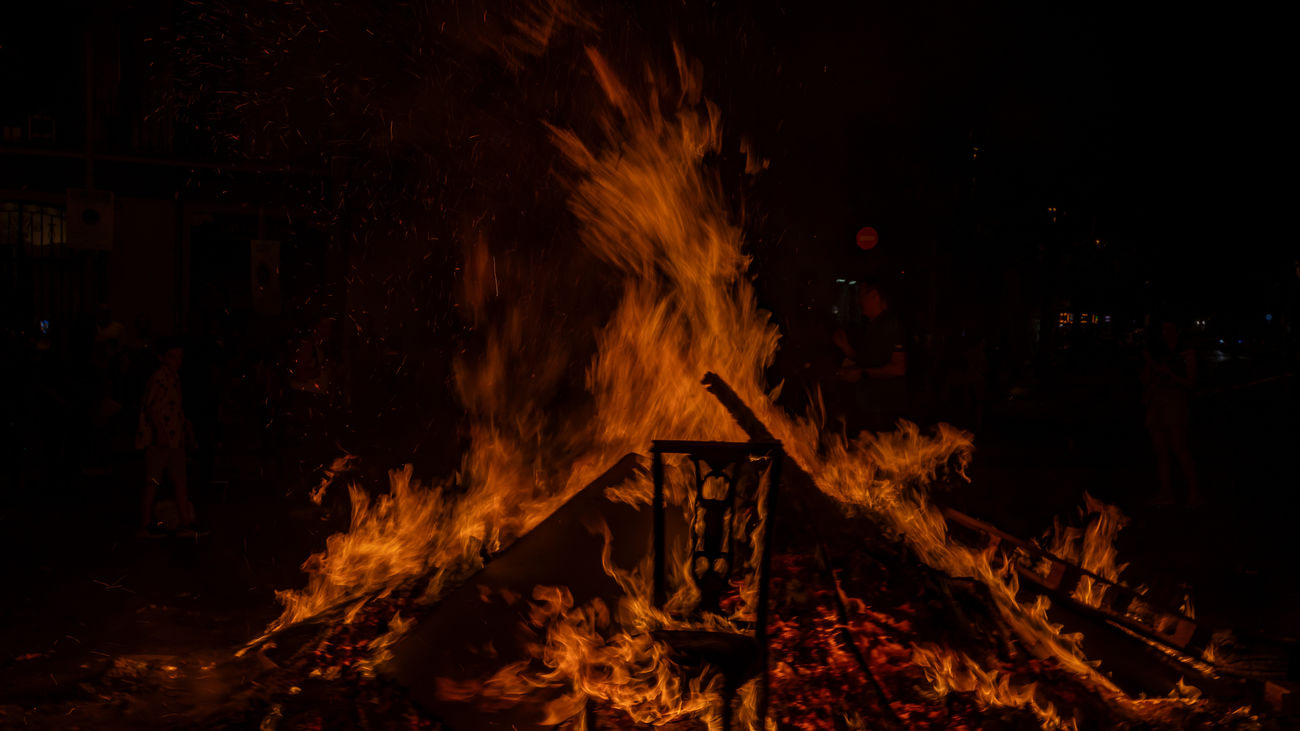 Los Bombers recibieron el aviso a las 22.15 h y apagaron la hoguera pero ya no se le pudo salvar.