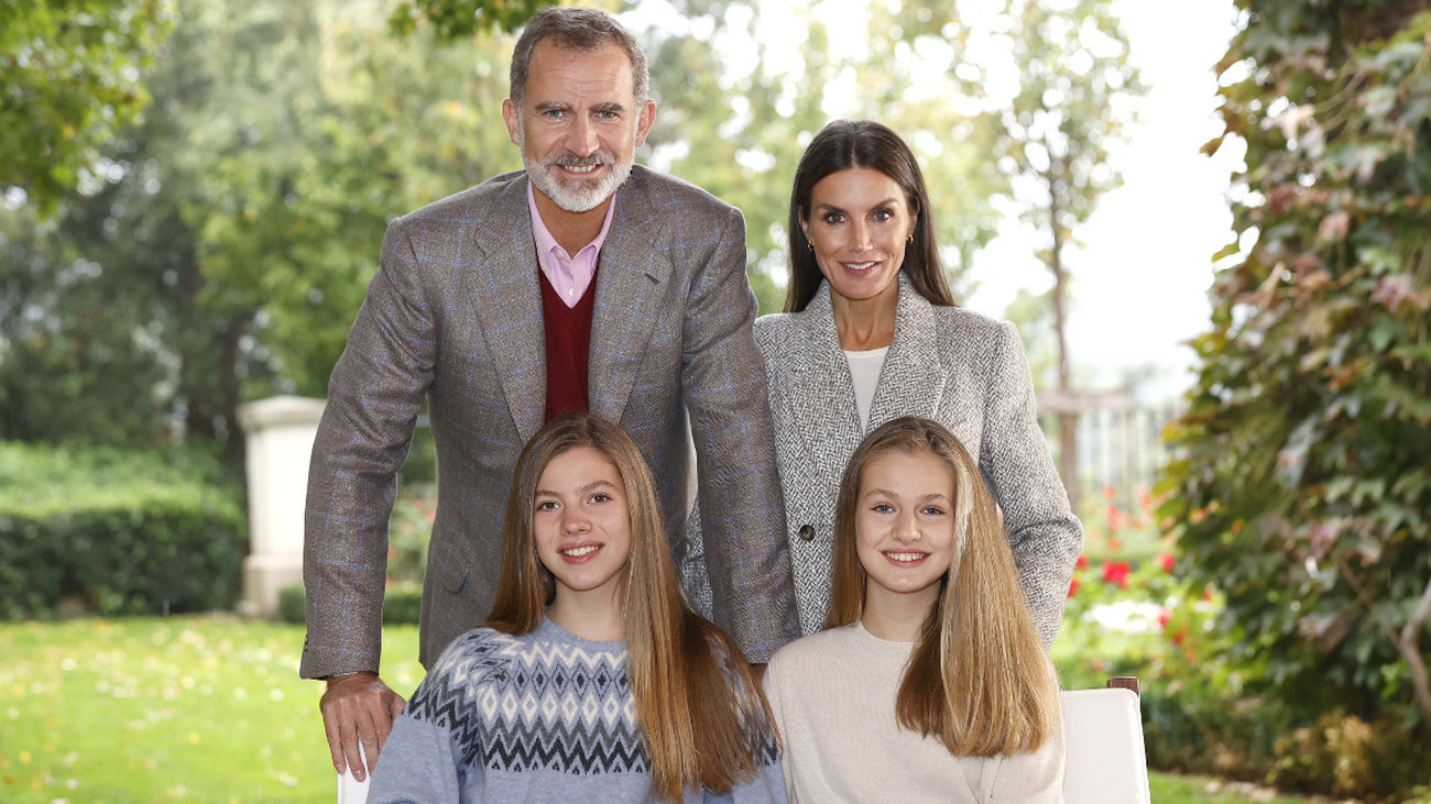 La imagen elegida para la ocasión muestra a los Reyes y sus hijas en un jardín, en el Palacio de la Zarzuela, vestidos de manera informal y sonrientes. Don Felipe y Doña Letizia están de pie apostados detrás de Leonor y Sofía, que aparecen sentadas.
