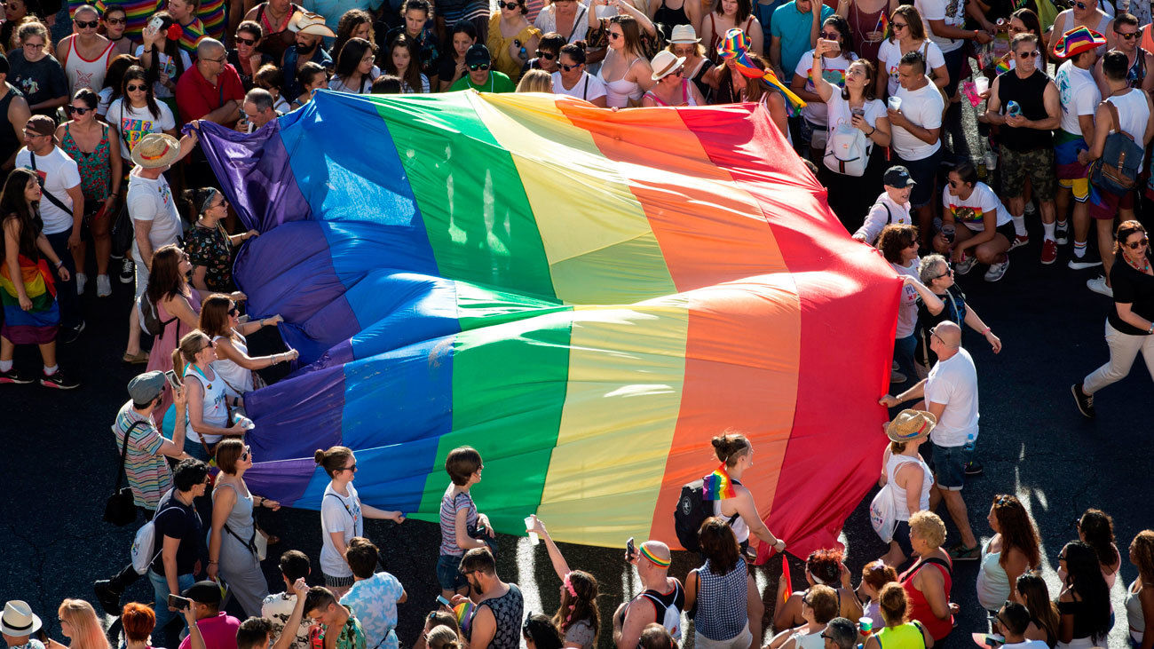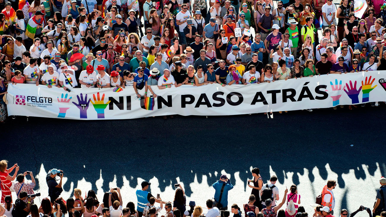 Un grupo de participantes en la manifestación del Orgullo 2019 portando la bandera arcoiris / EFE