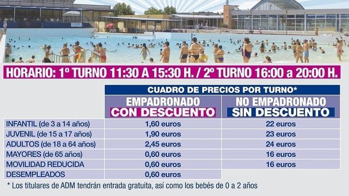 Hay también opción de adquirir bonos de 10 entradas. Para los vecinos tendrá un precio de 22,40 euros (niños) y 34,40 euros (adultos). Por su parte, la tarifa del bono para no empadronados tendrá un coste de 33,60 y 52 euros, respectivamente.