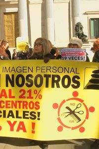 El sector de la imagen personal ha protestado frente al Congreso de los Diputados para pedir al Gobierno que se permita el debate y la votación de la Proposición de Ley para modificar el artículo 91 de la Ley 37/1992 del IVA para restituir el tipo reducido del 10%, y cuyo plazo para que se acepte o no finaliza este martes. “La señora presidenta nos los tiene bloqueado en una cajón con un llavecita”, denuncia su portavoz, Silvia.