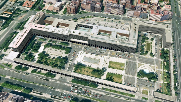 Esta gran mole de hormigón situada en pleno Paseo de la Castellana y que alberga la sede de varios ministerios tiene una de las estructuras más curiosas de Madrid. A pesar de que miles de personas pasan a diario por sus alrededores, muy pocos habrán reparado en su particular planta.