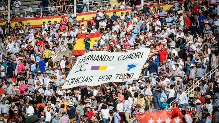 Madrid volvió a la normalidad, a la calma. La resaca patriótica dejó liquidados a los ocasionales y fue un día más para los fijos. La vergüenza y el cachondeo que traen los animosos dio pie a la seriedad, el respeto y la exigencia. Seriedad de los de Cuadri, respeto a don Fernando y exigencia para que saludase el ganadero desde el tendido. Una pancarta, otra, surgió desde el corazón del tendido 7 agradeciendo al ganadero el legado que deja o más bien los logros conseguidos. Era la última corrida que lidiaba como titular del hierro onubense. Emocionado y tras más de dos minutos de rotunda ovación se puso en pie. Saludó a los presentes y volvió a la piedra para ver naufragar a sus toros. No fue una buena corrida, de hecho dijo el criador que era de las peores que había lidiado en Las Ventas.