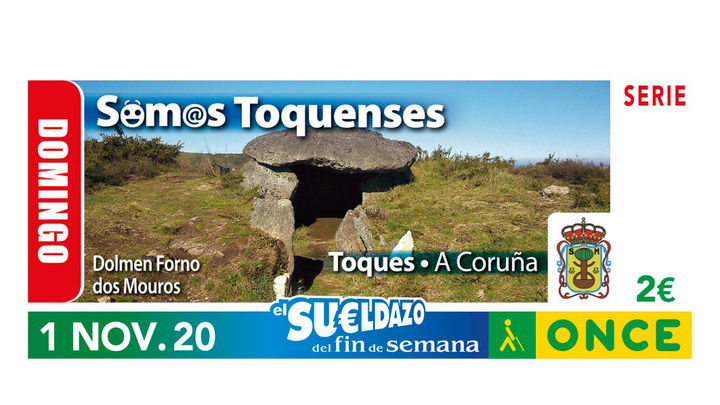 El cupón de la ONCE se 'customiza' en noviembre para hacer un recorrido por algunos de los gentilicios más curiosos y llamativos del país, en una nueva serie perteneciente a los sorteos de domingo, que comienza el 1 de noviembre, día de todos los santos. La serie arranca con el municipio coruñés de Toques, cuyos habitantes, toquenses, verán como su gentilicio y su localidad recorren toda España. El cupón está ilustrado con una fotografía del Dolmen Forno dos Mouros, uno de los mejor conservados de Galicia: "La ONCE es una asociación que está a pie de calle y lo lógico es que devolvamos a los ciudadanos con esta iniciativa lo que ellos nos dan a nosotros", nos cuenta en Buenos Días el responsable de su creación Antonio Mayor, director de comunicación e imagen de la ONCE.