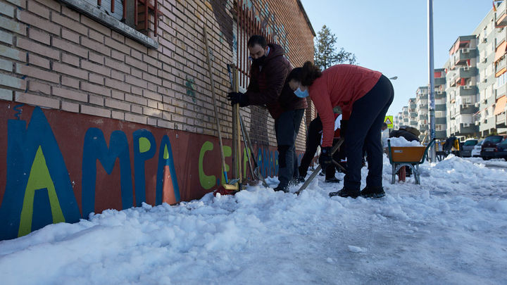 El malestar de algunos padres y madres de estudiantes se ha hecho patente en los últimos días en los que el Gobierno regional ha retrasado hasta tres veces la vuelta a las clases. Son muchos los familiares de alumnos que se han organizado junto al personal de los centros para ser ellos mismos los que abran paso con sus propios medios en los colegios y limpien los patios y las zonas deportivas.