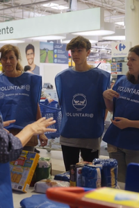 Los voluntarios visten un peto azul para que puedan ser diferenciados. Además, entregan bolsas a la entrada del supermercado para que introduzcan los productos que desean donar.