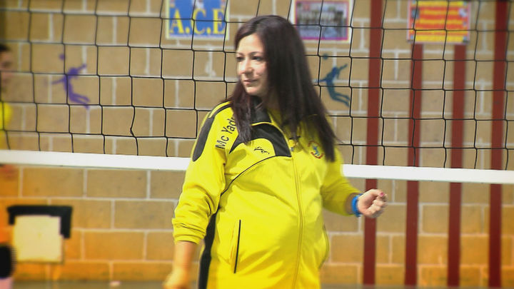 Embarazada de casi seis meses, se resiste a abandonar una actividad que se ha convertido en el centro de su vida. Reconoce que las niñas a las que entrena desde hace años, tienen ahora más cuidado con ella y la protegen de cualquier percance o balonazo durante esos entrenamientos.