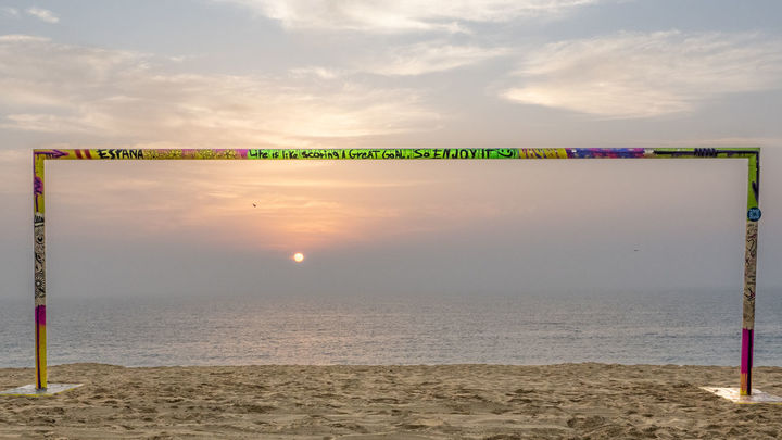 Hablamos con Jordi Gil sobre el diseño y mensaje de su obra, recorremos el resto con él y, claro, aprovechamos la excusa de tan reconocible elemento futbolístico para observar Qatar entre los tres palos.