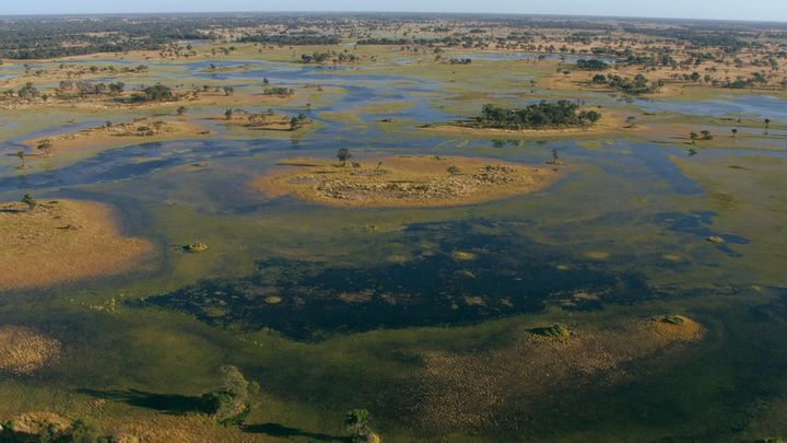 El río Okavango, tras serpentear durante más de mil kilómetros por tierras angoleñas, decide que su final tenga lugar en Botsuana, en los arenales del desierto de Kalahari. Y es en su última etapa donde se convierte en una maravillosa rareza: no desemboca en el océano, sino que esparce miles de millones de litros de agua en una de las zonas más áridas y extremas del planeta. Ese pedazo de Botsuana es uno de los lugares del planeta con más vida salvaje y, por lo tanto, un destino idóneo para realizar safaris.