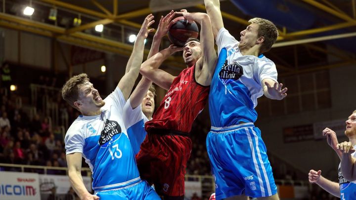 Los protagonistas de la victoria del Fuenlabrada por 84-83 ante el Monbus Obradoiro.: Luka Rupnik, Alex Llorca, Daniel Clark, Marc García y Marco Popovic.