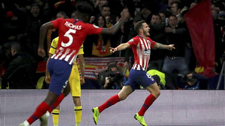 El centrocampista Saúl Ñíguez marca el primer gol del Atlético de Madrid frente al Borussia de Dortmund en partido de Liga de Campeones.