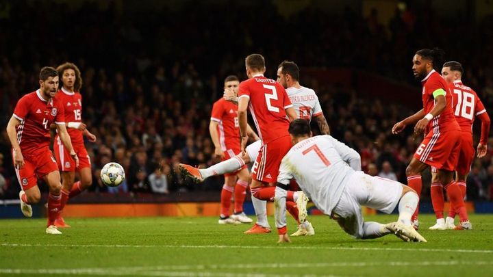 Un balón suelto en el área no fue despejado con acierto ni por Ashley Williams ni por Chris Gunter y le llegó a Alcácer en la frontal de la área pequeña. Su pierna derecha no perdonó a Wayne Hennessey.