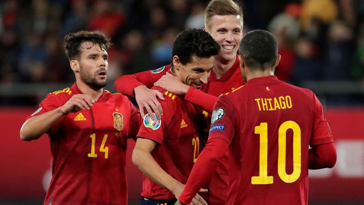 España: Pau López; Jesús Navas, Raúl Albiol, Sergio Ramos (Pau Torres, m.60), Bernat; Thiago Alcántara, Rodri, Santi Cazorla (Alcácer, m.53); Gerard Moreno, Morata (Dani Almo, m.66), Sarabia