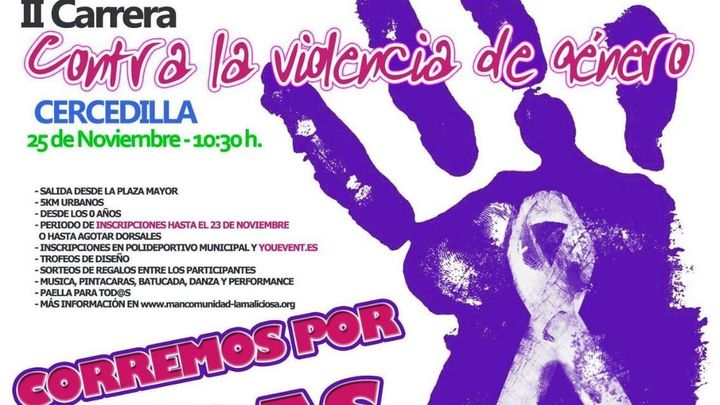 La Mancomunidad de Servicios Sociales y Mujer La Maliciosa -que integra a los ayuntamientos de Guadarrama, Los Molinos, Cercedilla, Becerril de la Sierra, Navacerrada y Collado Mediano- organiza el domingo 25 de noviembre la segunda Carrera Contra la Violencia de Género, que tras estrenarse el año pasado en Guadarrama recalará en esta ocasión en Cercedilla.