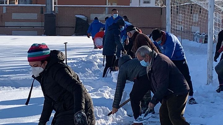 El club hizo un llamamiento. Y esta mañana jugadores, cuerpo técnico, directivos, aficionados, han cogido la pala para retirar la nieve. Nos lo cuenta Masiqui, un histórico del club.