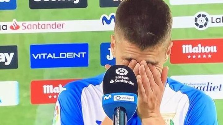 El capitán del CD Leganés, Unai Bustinza, nos emocionó con su discurso nada más haber finalizado el parido que supuso el descenso del Leganés a Segunda División tras cuatro años en la élite.
