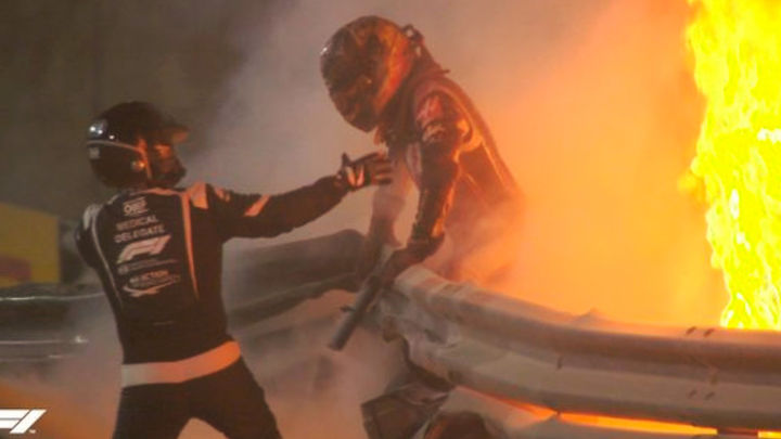 Algo más de 20 segundos después, Grosjean emerge de entre las llamas y sale prácticamente ileso. Apenas unas quemaduras leves y algunos daños en las costillas. Nada roto. El piloto se restablece en un hospital de Baréin, las previsiones apuntan a que recibirá el alta este martes mismo.