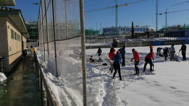 Los clubes han hecho llamamientos para limpiar sus estadios.s estadios. Es el caso del Rayo Majadahonda. Socios, abonados, padres de los niños que juegan en la escuela del club, acudieron este miércoles pala en mano para despejar de nieve el estadio de La Oliva, el lugar donde entrenan y compiten.