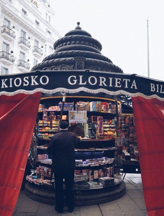 Un señor compra el primer periódico de la mañana, Glorieta de Bilbao