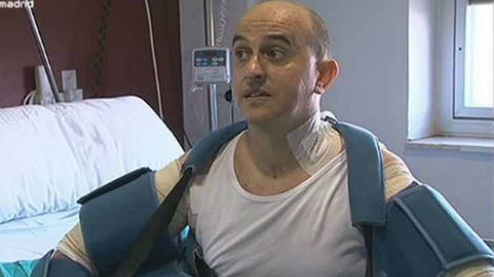 A Luis le espera una larga rehabilitación, pero en meses podrá ya flexionar los codos.