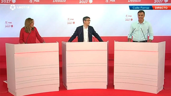 Siguen sonando los ecos del debate ayer de los tres candidatos socialistas. Susana Díaz aseguró que se irá si no logra que el PSOE remonte y que el problema para Pedro Sánchez no es ella sino él mismo. Pedro Sánchez insistía en que la abstención a Rajoy había sido el peor de los erroes y le ha reprochado a Díaz que le cuestionara como líder desde el principio. Patxi López afirmó que su objetivo es ganar al PP, no pactar con Podemos.