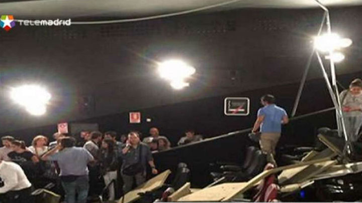 El suceso ha ocurrido sobre las 20.40 cuando unos 30 metros cuadrados del falso techo, compuesto de escayola y fibra, así como los hierros que los sujetaban, se ha desprendido sobre el público, ha informado a Efe un portavoz de Emergencias Madrid. Los sanitarios del Samur-Protección Civil han atendido a siete personas que presentaban contusiones leves, según la misma fuente.