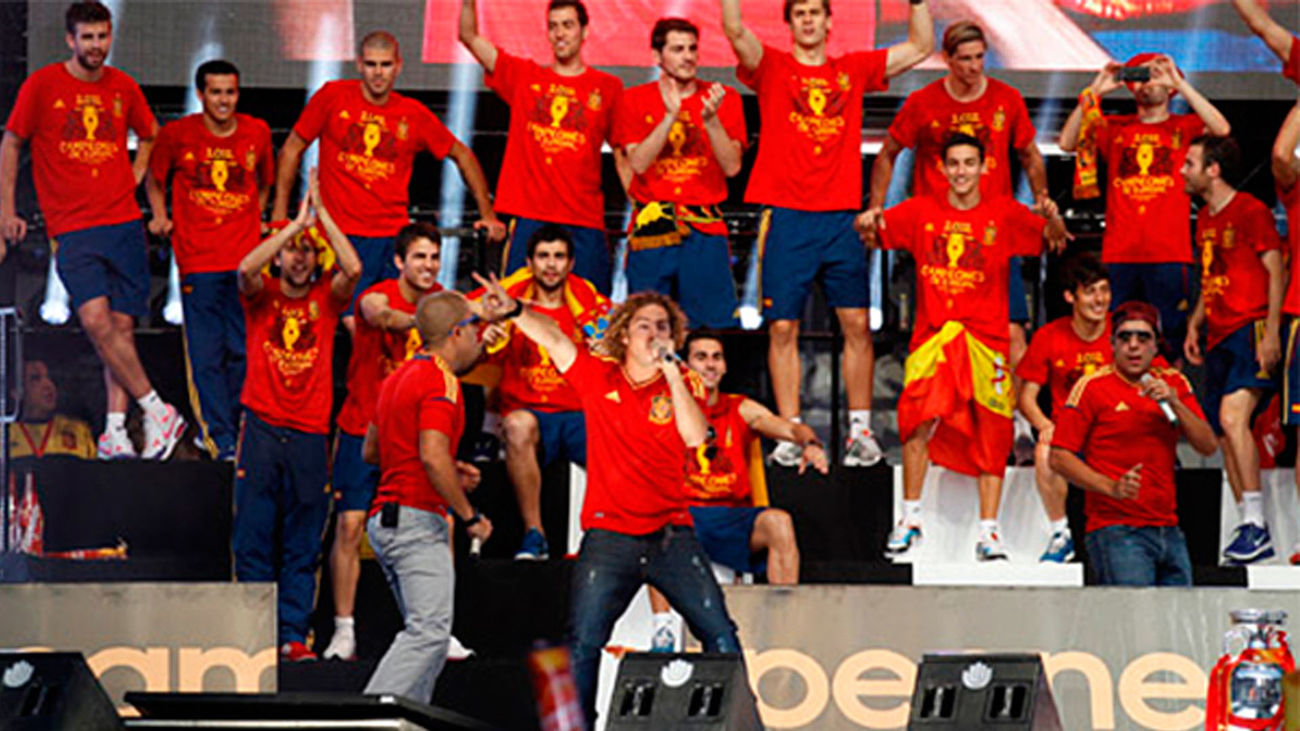 Con su 'No hay dos sin tres', David acompañó a la Selección Española durante su victoria cantándoles el himno que les había acompañado durante toda la Eurocopa 2012 |Redacción