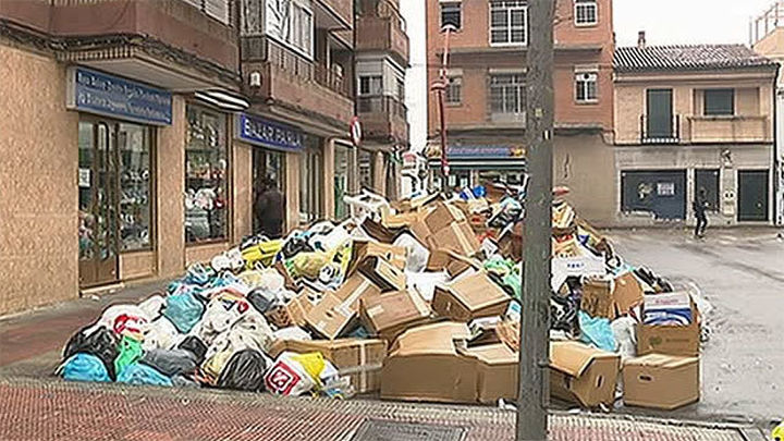 Una semana sin recoger la basura de las calles. Las aceras de Parla estan repletas de desperdicios. Por si fuera poco, la lluvia ha extendido la suciedad. La huelga de los trabajadores de la limpieza cumple ya una semana sin acuerdo con el Ayuntamiento que todavía les debe a los trabajadores la nómina de febrero. Segunda huelga de basuras que sufre Parla en lo que llevamos de año.
