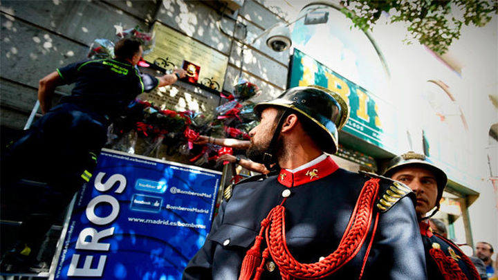 Madrid homenajea hoy a los bomberos fallecidos en el incendio de los almacenes Arias cuando se cumplen 30 años del siniestro. Sus compañeros los han recordado depositando una corona de flores en el edificio de la calle Montera.
