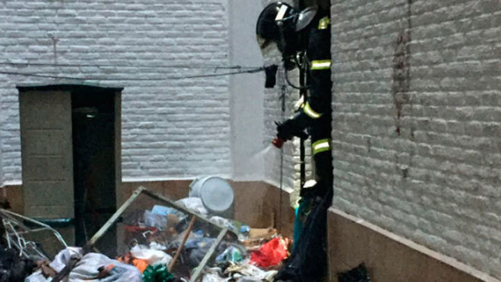 Tres intoxicados leves en incendio de vivienda llena de basuras en Arganzuela