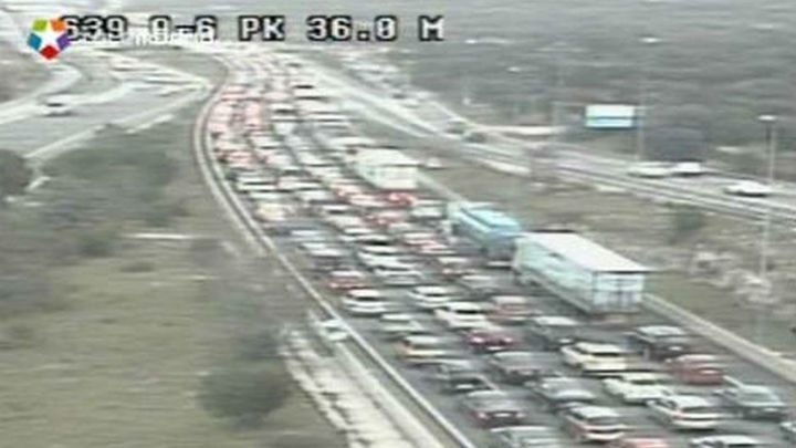 La carretera de Andalucía, A-4, presenta 10 kilómetros de circulación lenta a la altura de Pinto, mientras que la M-607 a Colmenar acumula otros 10 kilómetros en Tres Cantos.